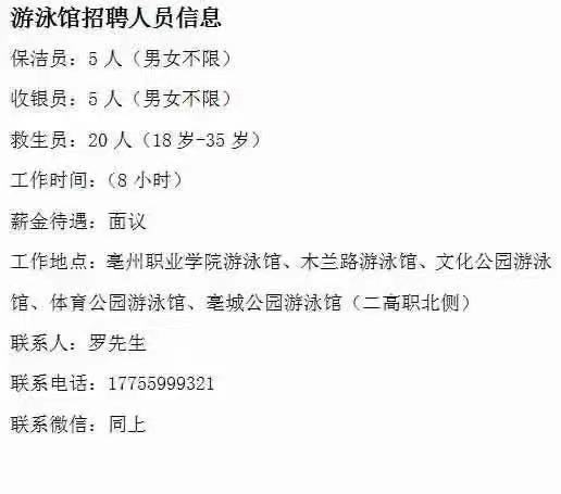 游泳館招聘