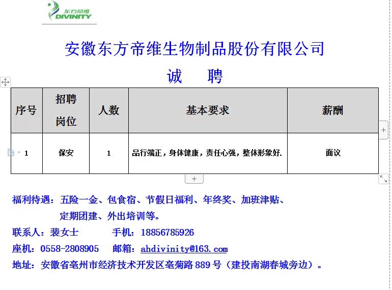 招聘安保、保潔